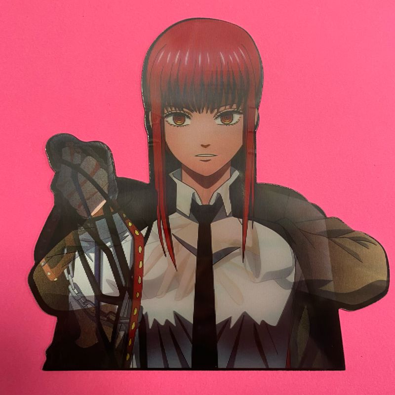 3D стикер с Макимой из аниме «Человек-бензопила». Изображение на стикере меняется, если смотреть на него под разным углом! Печать на плотном материале! Идеально подойдет для ноутбука или любой другой поверхности!