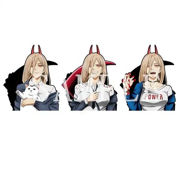 3D стикер с Пауэр из аниме «Человек-бензопила». Изображение на стикере меняется, если смотреть на него под разным углом! Печать на плотном материале! Идеально подойдет для ноутбука или любой другой поверхности!