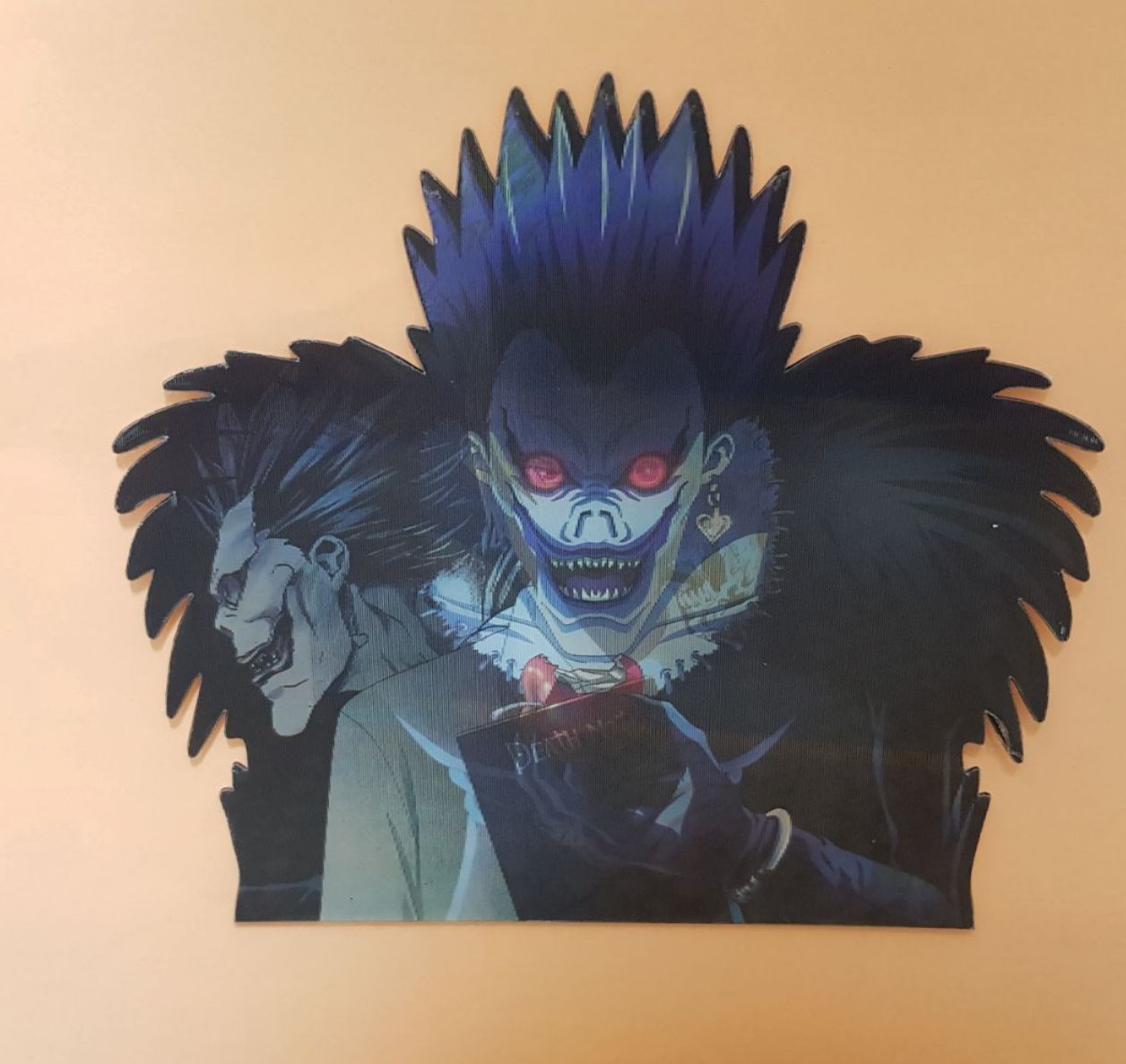 3D стикер с Ягами Лайтом и Рюком из аниме «Тетрадь смерти». Изображение на стикере меняется, если смотреть на него под разным углом! Печать на плотном материале! Идеально подойдет для ноутбука или любой другой поверхности!