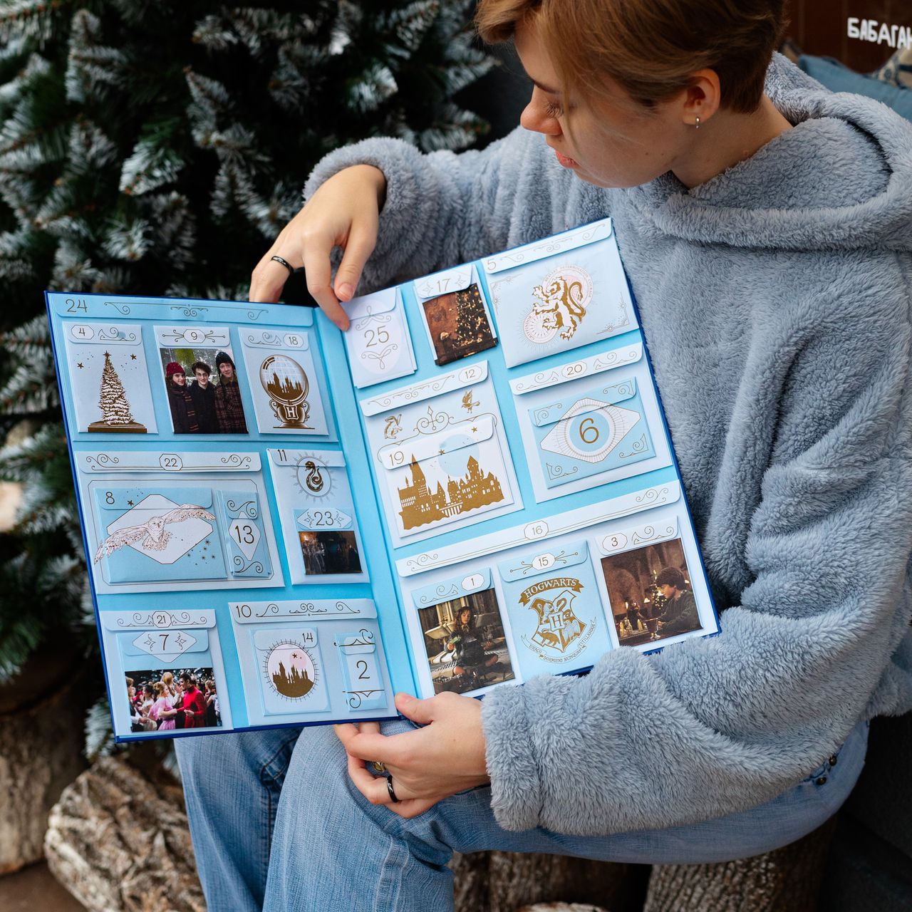 АКЦИО! Впустите магию в свою жизнь! Декабрь обладает удивительной волшебной атмосферой, ведь это месяц подведения итогов текущего года и ожидания следующего. Но с этим официальным адвент-календарем прямиком из волшебной вселенной Гарри Поттера вы не заметите, как пролетит месяц — ведь вы проведете его в Школе Чародейства и Волшебства «Хогвартс»! Каждый день открывайте по одному кармашку и проверяйте, что появилось там как по взмаху волшебной палочки. За 25 дней вы станете обладателем письма из Хогвартса, билета на Хогвартс-экспресс, закладок, значков, стикеров, буклетов и многого-многого другого! Готовьтесь к новогодним праздникам с любимыми героями!