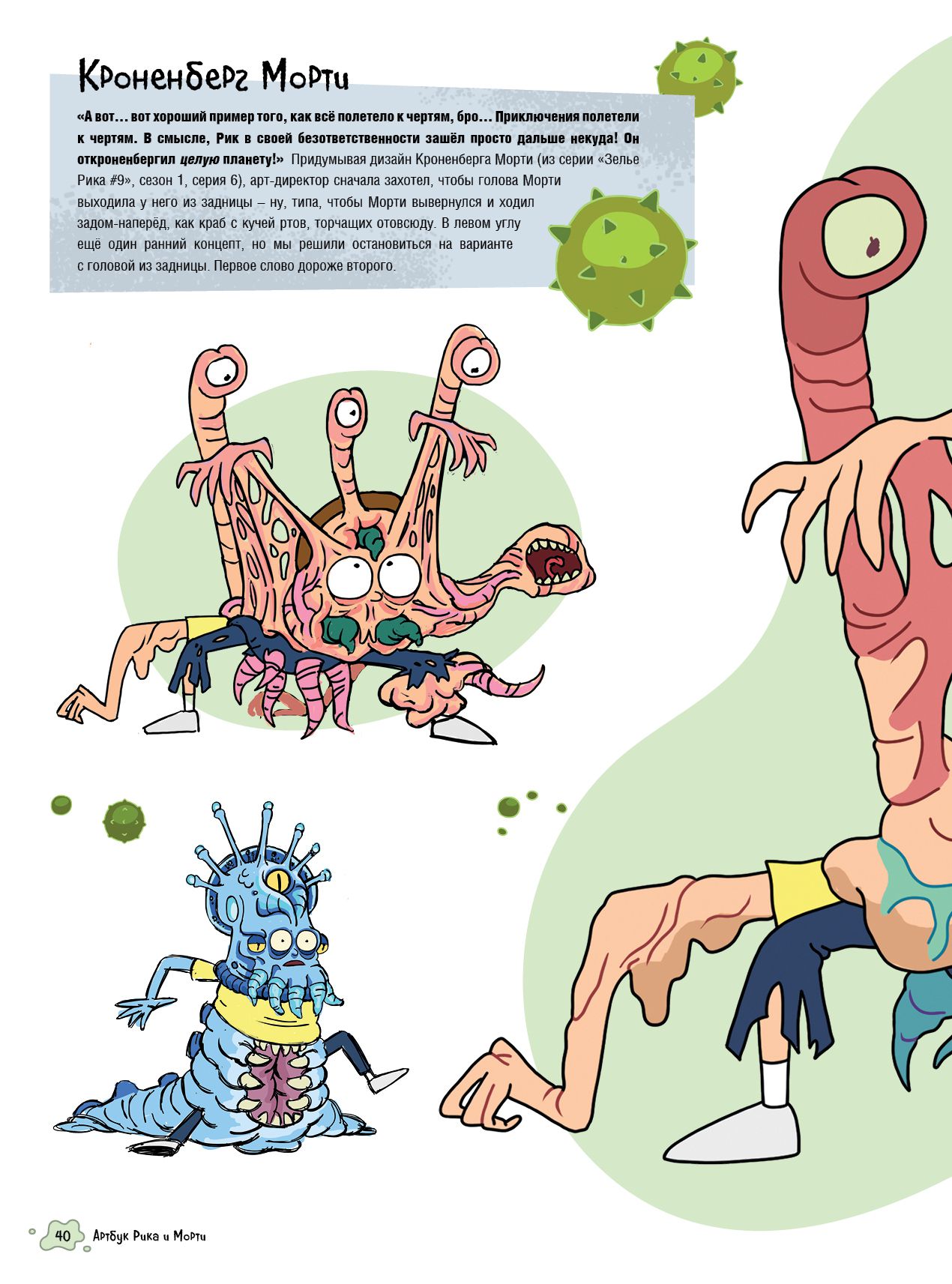 Кроме того, книга содержит множество набросков, концепт-артов, эксклюзивных рисунков и уникальных материалов, которые ранее не демонстрировались широкой публике. Одним словом, настоящий подарок для любого ценителя жесткого саркастичного сериала «Рик и Морти».