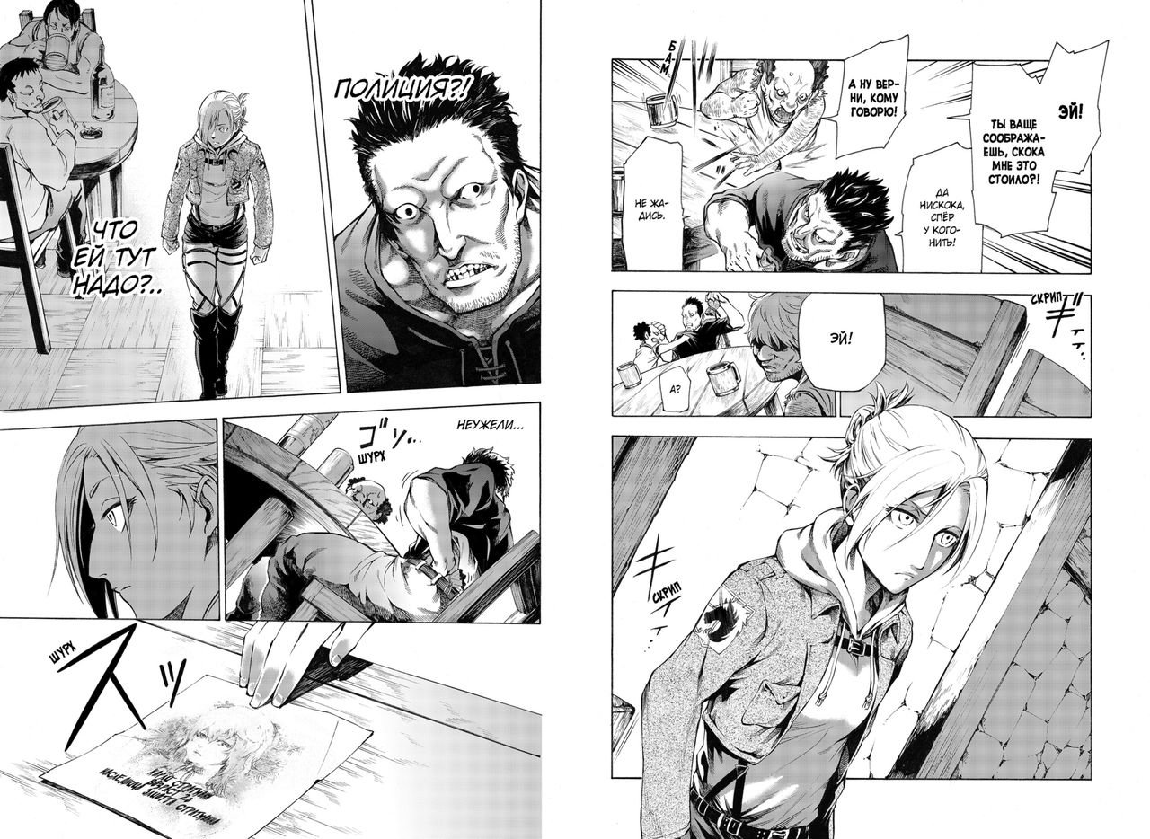 Манга состоит из трех историй, первая получила название «Стена Сина, прощай!». В ней Энни Леонхарт занимается поисками пропавшей девочки по имени Карли Штратман в окрестностях Стохеса, как раз накануне пятьдесят седьмой экспедиции Разведкорпуса. В процессе поисков, девушка случайно вскрывает масштабную коррупционную схему, и сталкивается с целым рядом проблем, которые могут сорвать не только нынешнюю миссию, но и грядущую.