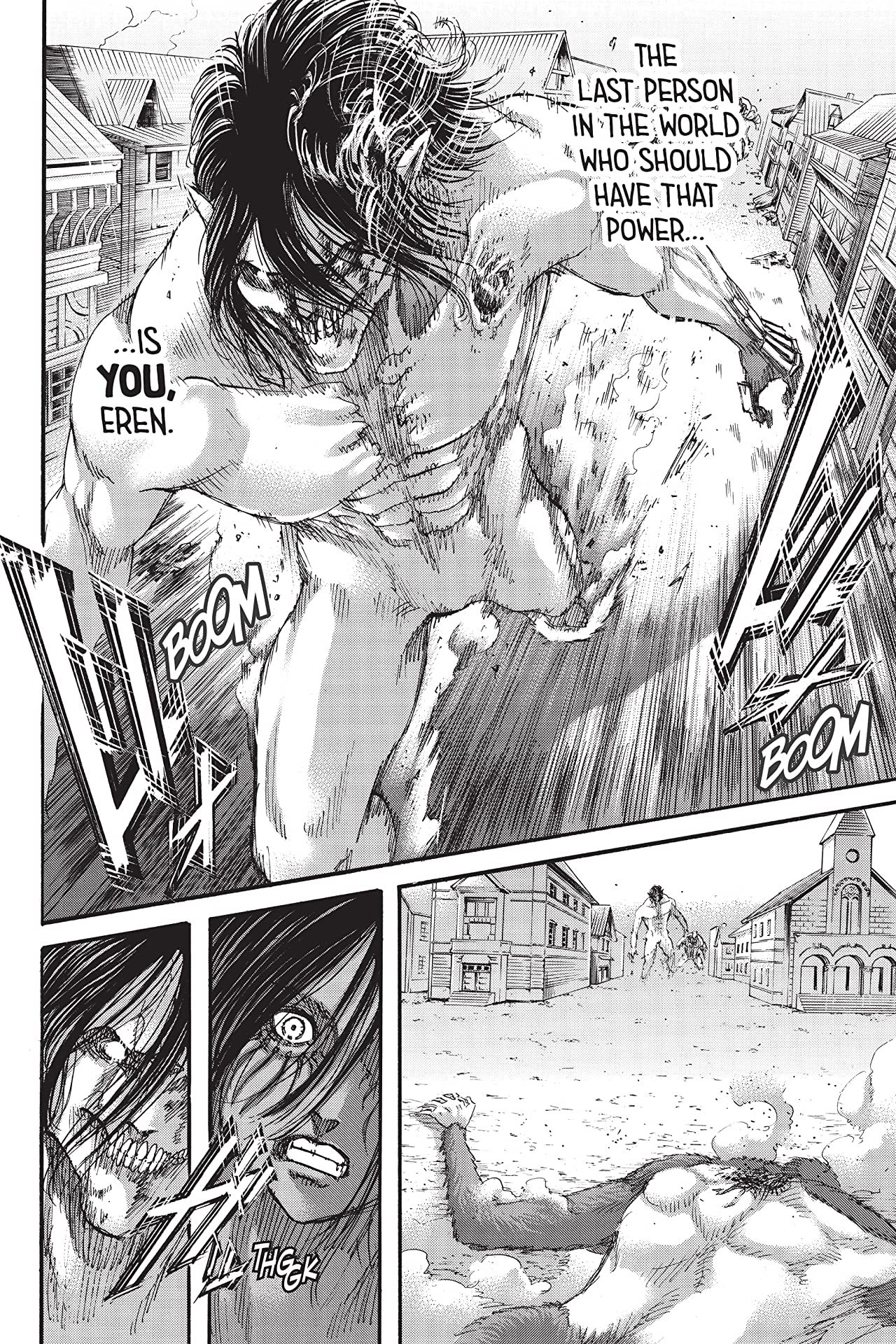 Многолетняя задумка Зика Йегера через предательство и смерти добиться справедливости – в финальной стадии. Милосердная смерть для всех и каждого. И даже непобедимый Леви не в силах остановить лавину событий, в центре которой братья Йегеры и их хитроумный и жестокий план. Если сила титанов так опьяняет всех, кто ею владеет, не проще ли избавиться от неё совсем? Или лучше уничтожить всех обычных людей, чтобы миром правило имирово племя? Истребить ненависть означает истребить врага?