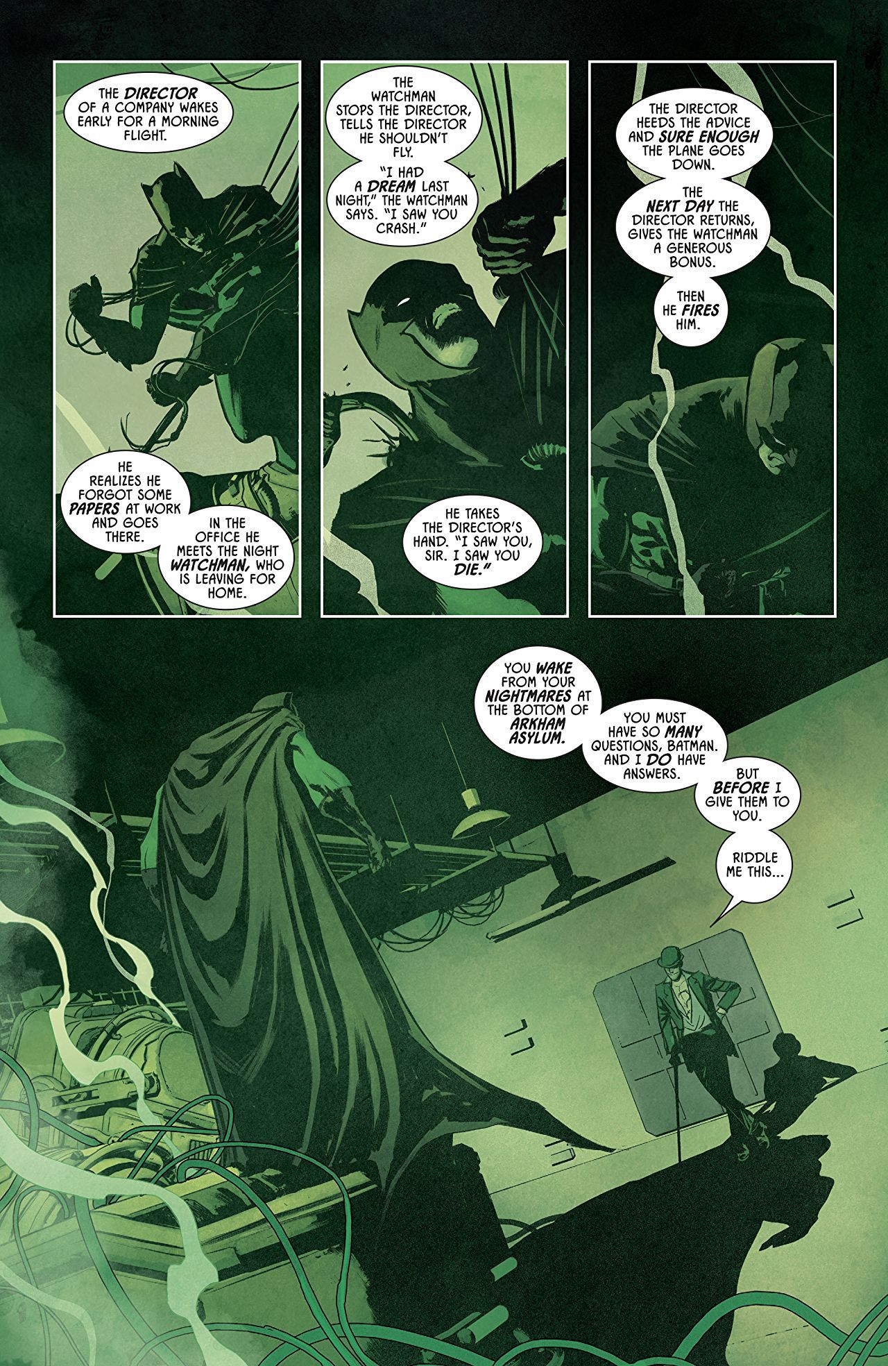 Бэтмен избегает своих Кошмаров, только чтобы оказаться в скопище других дурных снов. Он заперт в лечебнице Аркхем вместе со своими злейшими врагами, и единственный способ выбраться - одолеть их всех. Это гладиаторская игра безумия и увечий, и всё для развлечений Бэйна!