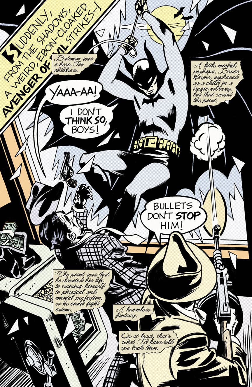Курт Бьюек рассказывает просто потрясающую историю о том, как комиксы могут вдохновлять и помогают людям справится с их печалью. Джон Пол Леон идеально дополняет это все интересным рисунком, который делает повестование гораздо красночней и интересней! Данный графический роман обязан купить каждый фанат Бэтмена, который давно хочет свежего глотка в историях о любимом супергерое!