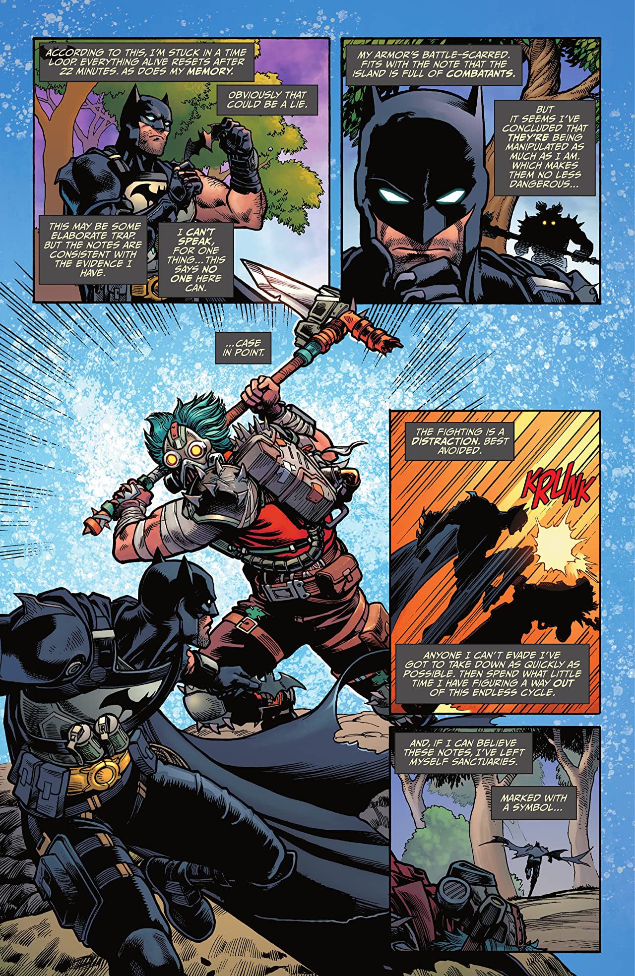 Бэтмен оказался в ловушке на Острове - не мог говорить, его память ушла, ему приходилось сражаться, чтобы выжить, против самых смертоносных воинов бесчисленных миров. Сможет ли даже величайший детектив в мире избежать этой ловушки, когда само время сбрасывается каждые двадцать две минуты?