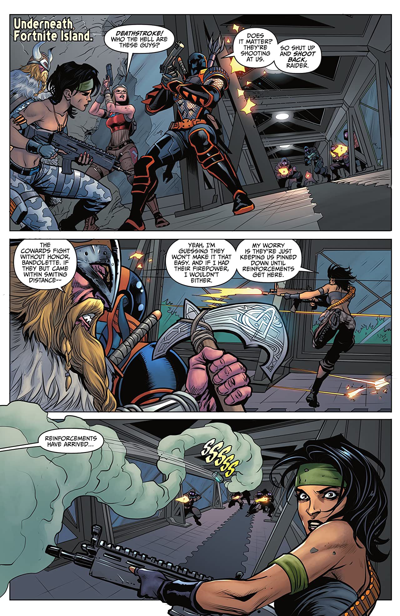 Бэтмен, Женщина-кошка и банда бойцов Fortnite пробираются глубоко в подземный комплекс острова, чтобы сбежать из Петли - областей, никогда ранее не встречавшихся в игре, и секреты которых раскрывает только величайший детектив в мире. По пути они будут бороться за свою жизнь.