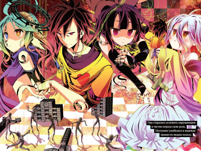 Сора и Сиро — брат и сестра. Они — хикикомори, нигде не работают и не учатся, но прославились на весь Интернет благодаря мастерству в играх. Попав в Дисборд — мир, где все решается при помощи игр, — они стали правителями человечества и задумали объединить все расы и бросить вызов Единому Богу.Так и не найдя способ выиграть в игре королевы сирен, брат с сестрой отправляются за информацией в город крылатых, Авант Хейм! Смогут ли они найти общий язык с расой, созданной для войны с самими богами?Предстоит покорить и море, и небеса, завоевав одним махом сразу три народа!