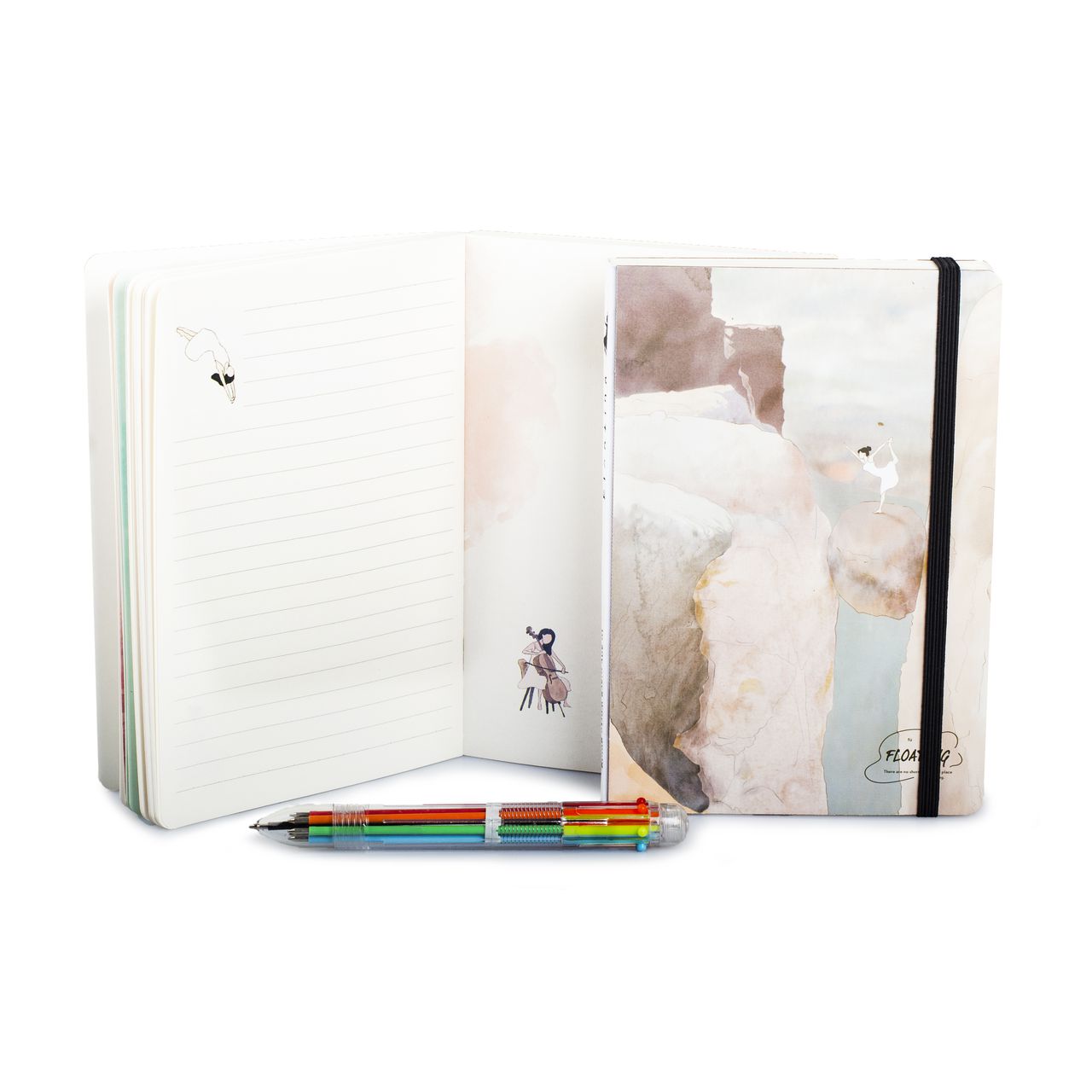 Также с блокнотом идет ручка, которая содержит 6 разноцветных стержней.