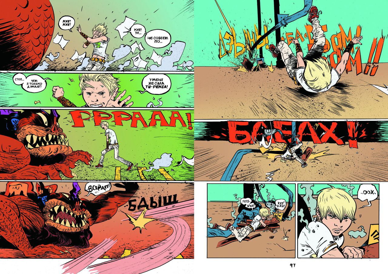 Подростковый комикс от невероятного Пола Поупа! Монстры осаждают город Аркополис и утаскивают детей к себе в страшное подземелье. И лишь один герой способен остановить их - великий борец со злом Хаггард Уэст. К несчастью, Хаггард Уэст мертв. И когда жителям Аркополиса кажется, что надежды больше нет, в городе появляется новый герой - загадочный подросток, известный только как Боевой Парень. Горожане удивлены, монстры удивлены, но больше всех удивлен сам Боевой Парень, ведь он не ожидал что станет последней надеждой Аркополиса! "Боевой Парень" - первая из цикла детских книг одного из самых необычных комиксиста современности, Пола Поупа ("Batman: Year 100", "Heavy Liquid", "100%"). Подходит для всех возрастов и вкусов.