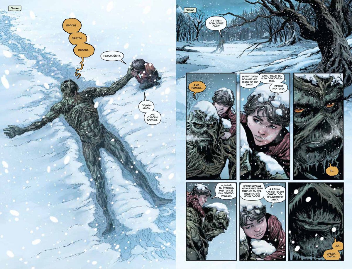 Алек Холланд, он же Болотная Тварь, стал защитником Зелени – силы, связующей всю растительную жизнь на Земле. Он черпает в ней мощь, позволяющую ему играючи сокрушать здания и бросать вызов самым грозным противникам. Но что, если Алек очутится посреди ледяной бури, лишившись связи с Зеленью? Что если с ним не будет никого, кроме ребенка, который может положиться только на это странное существо? Что если по пятам будет идти кровожадное чудовище, которое с каждым шагом будет лишь крепнуть, а Алек – слабеть?