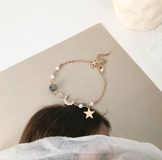 Очень нежный и красивый браслет с блестящей луной и маленькой звездочкой :)