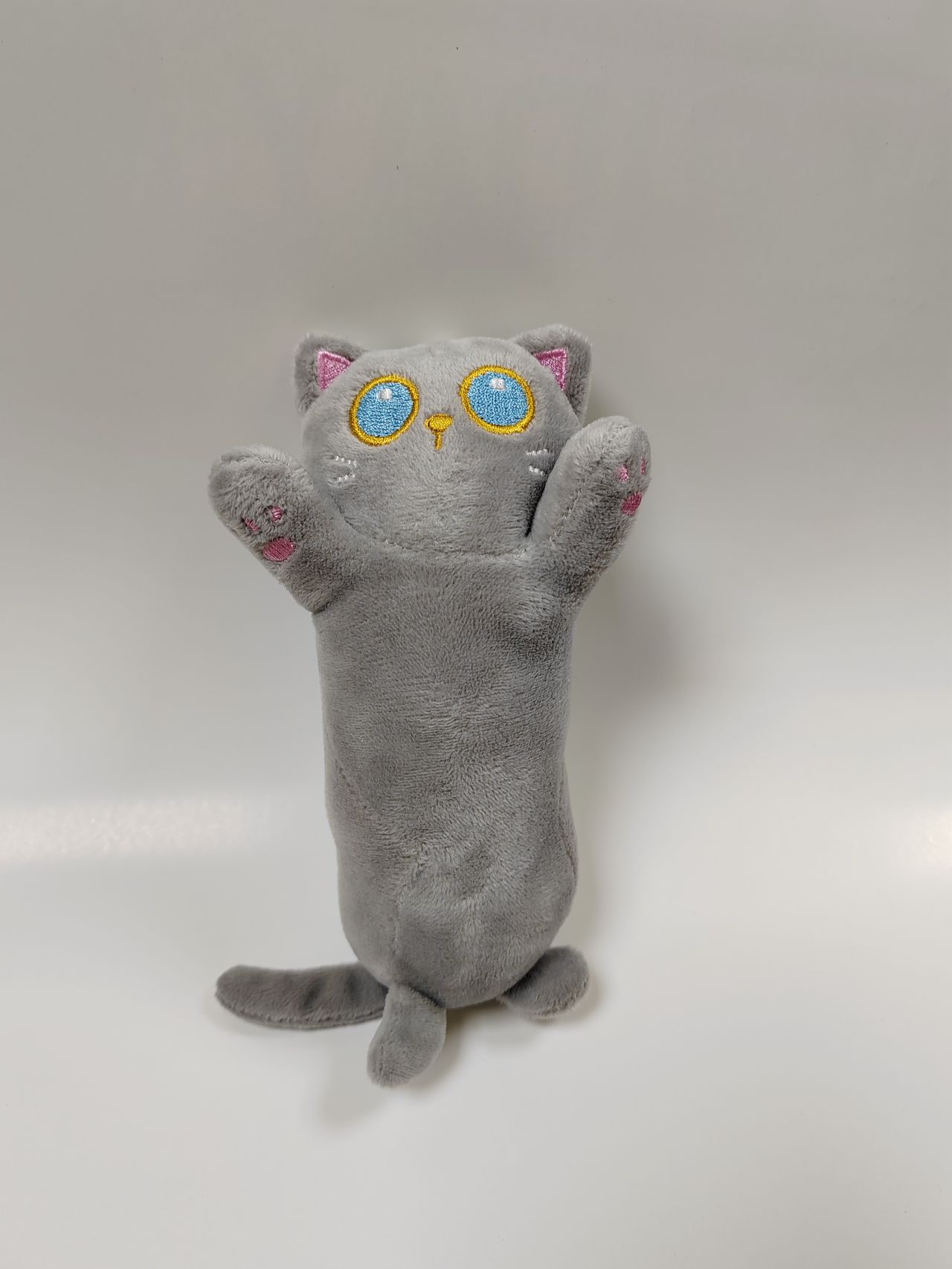 Брелок Кот-батон плюшевый, светло-серый