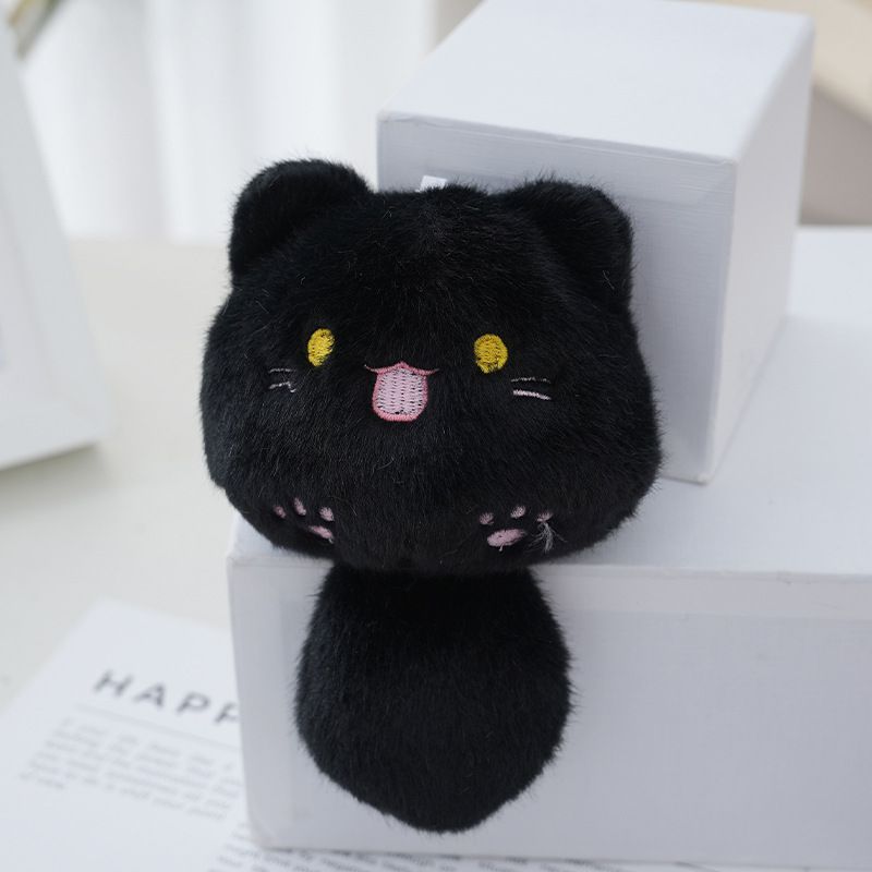 Брелок Котик хвостатый с пищалкой плюшевый, чёрный