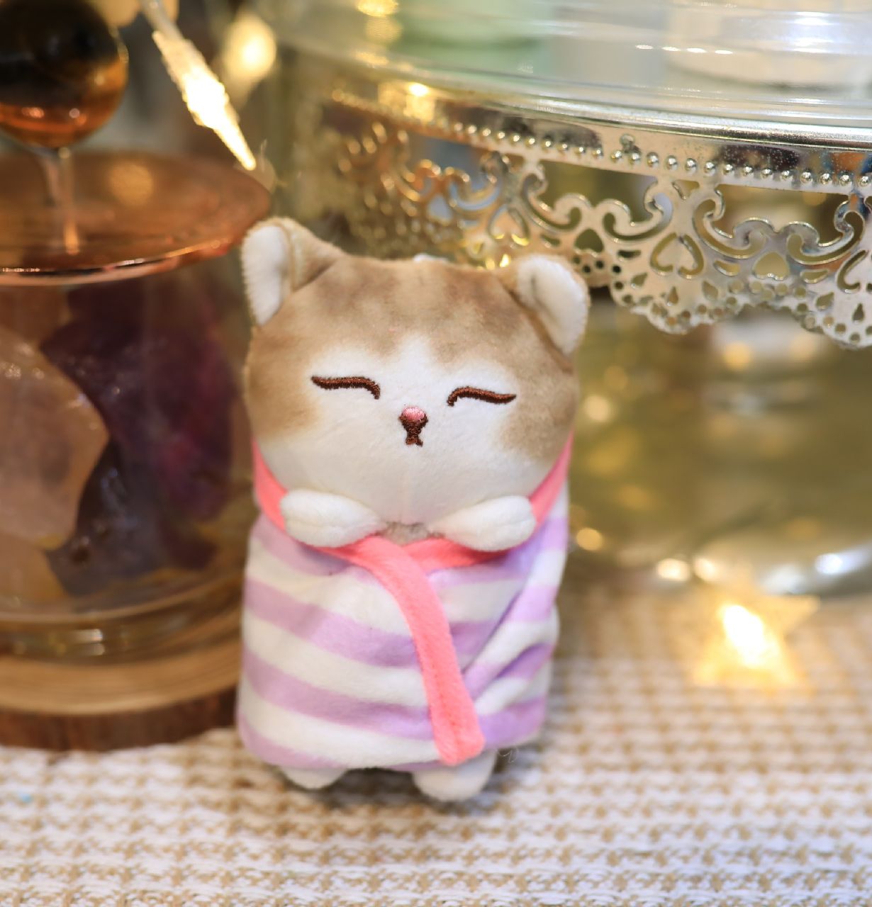 Милый плюшевый котик-брелок Mofusand в полотенце!