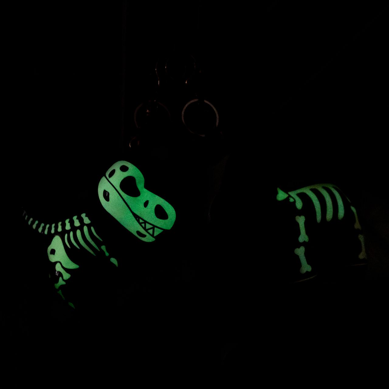 Мягкий брелочек в виде скелета динозавра! Он еще и светится в темноте :)