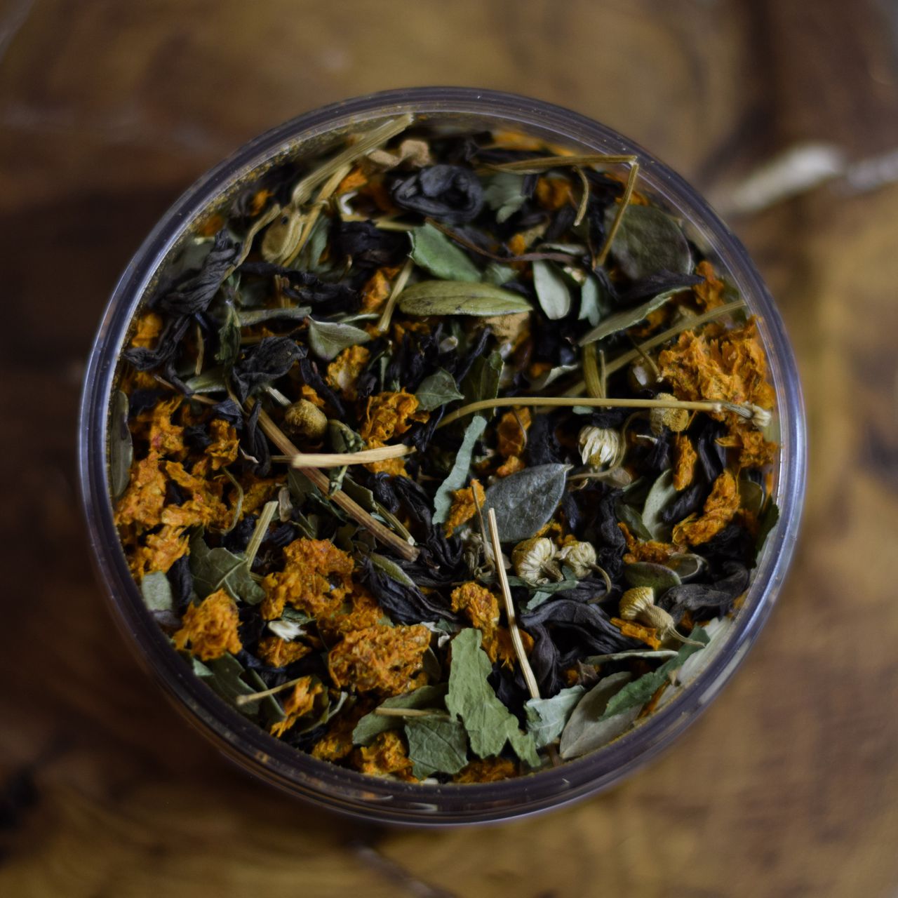 Измельчённая облепиха добавляет искрящийся свет, символизируя внутреннюю силу, способную осветить самую тёмную ночь. Ромашки будут окутывать вас мягкостью и заботой, а листья смородины и брусники добавят напитку приятную кислинку.