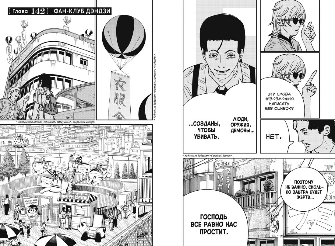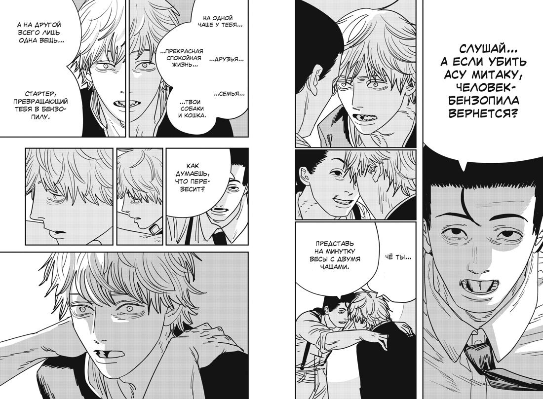 Битва с демоном-падением позади, но в Токио по-прежнему неспокойно: на улицах вспыхивают ожесточенные столкновения между последователями «Церкви Человека-Бензопилы» и гражданами, которые недовольны действиями безбашенного истребителя демонов. Бюро общественной безопасности решает взять ситуацию в свои руки и ставит Дэндзи перед выбором: либо юноша прекращает превращаться в Бензопилу и геройствовать в городе, либо охотники на демонов убивают Наюту. И пока Дэндзи думает, как ему выйти из сложившейся ситуации, Асу и Йор навещает Глада с весьма необычным предложением...