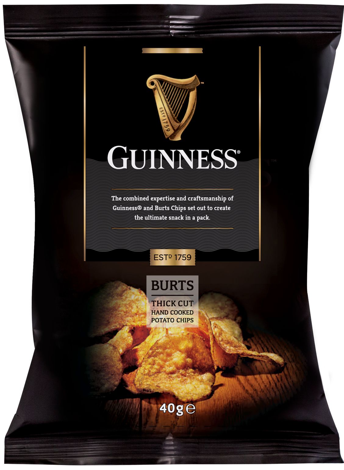 Чипсы от легендарного бренда Guinness, приготовленные вручную с добавлением ячменя и хмеля. В итоге получилась аппетитная хрустящая корочка с горьковато-сладким вкусом культового ирландского стаута.
