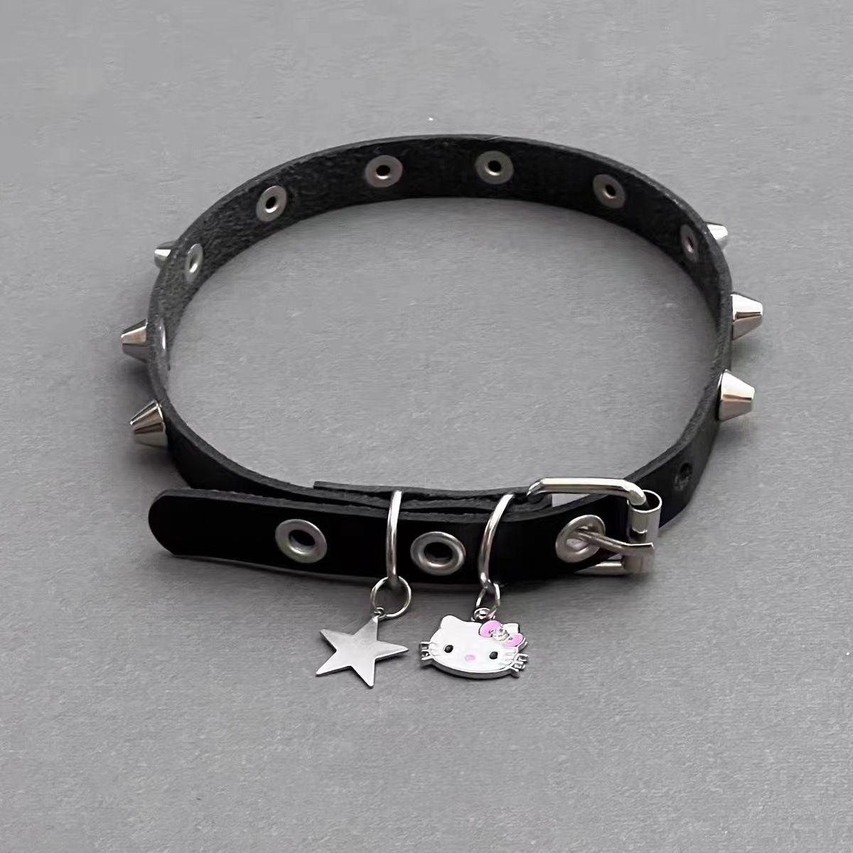 Чокер Китти (Hello Kitty), кожаный с шипами