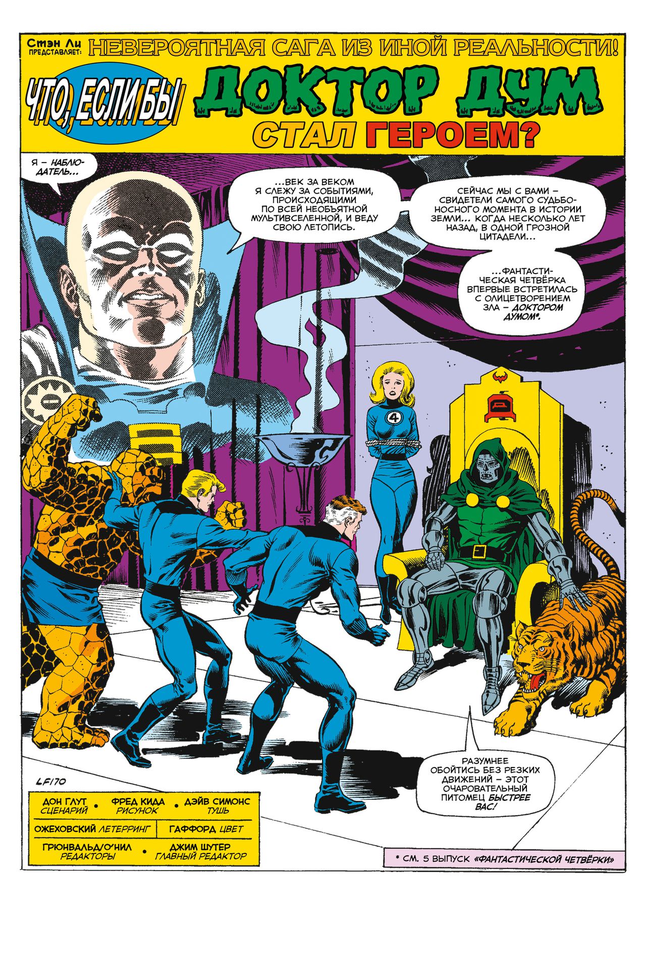 Доктор Дум — один из самых опасных и хитроумных злодеев во вселенной Marvel, суровый диктатор в маленькой, но гордой стране Латверии. Но что было бы, если бы этот многообещающий учёный избежал роковых ошибок молодости, и выбрал бы сторону добра? Какие препятствия ему пришлось бы преодолеть, с какими коварными врагами сразиться, чтобы оставаться авторитетным и справедливым правителем далёкой страны? И чтобы из всего этого получилось? Ответ внутри этого классического выпуска «Что,