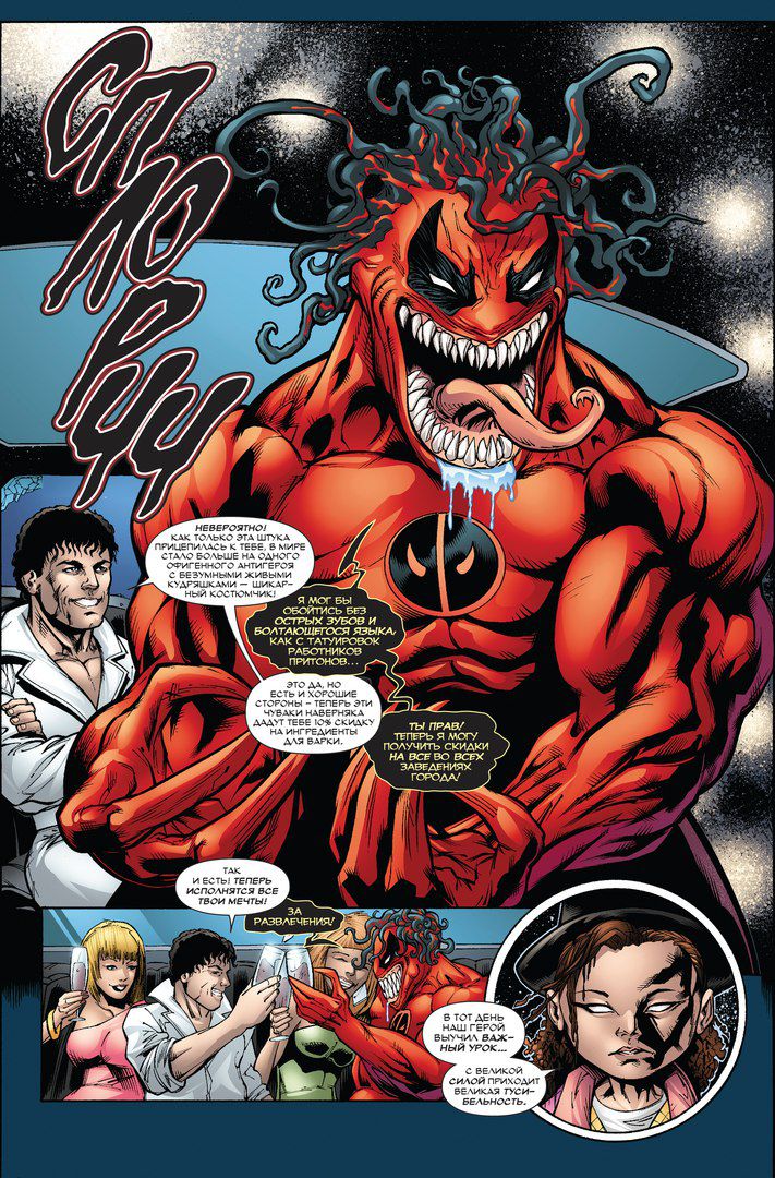 Легендарные Веном и Дэдпул в одном выпуске! Они были созданы в одну эпоху, но при этом являются полными противоположностями. Изначально единственной целью Венома было съесть мозги Человека-Паука, но теперь ему повстречался Дэдпул, который годами доказывал нам, что мозгов у него нет.