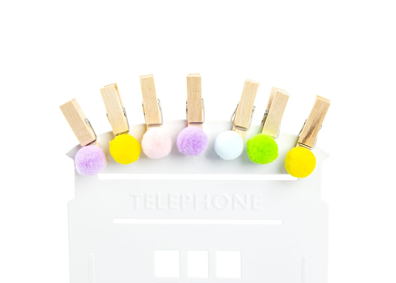 В наборе 10 декоративных прищепок с помпонами! Эти прищепки можно использовать для оформления в интерьере. К примеру, можно натянуть веревочку и прицепить на нее ваши любимые фотографии и открытки. Еще их можно использовать как канцелярские зажимы. Ну и совсем из личного опыта нашего баера — эти прищепки могут выполнять функцию маленьких заколочек для непослушной челки :)