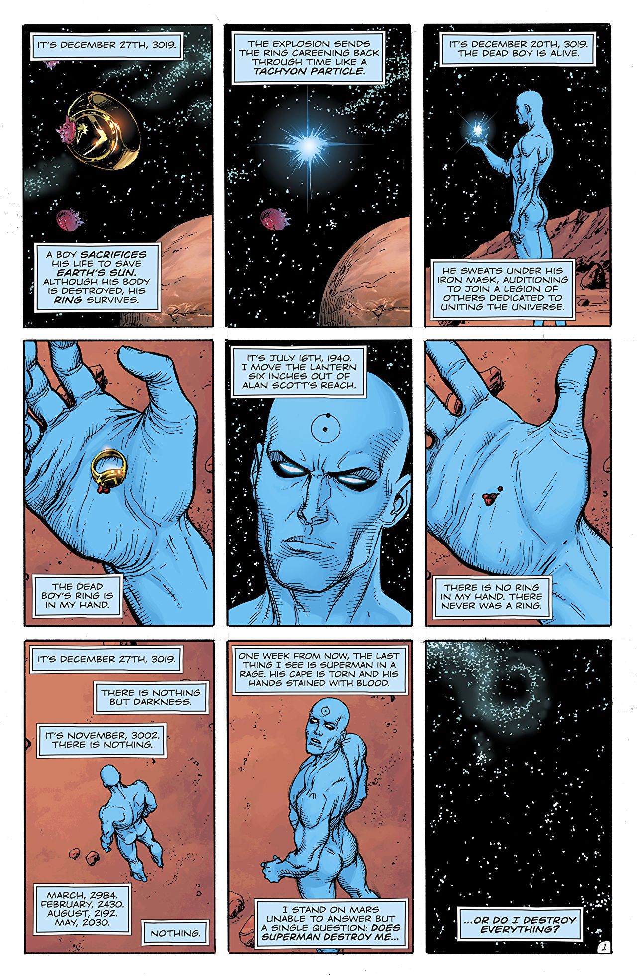 Известная серия главных авторов Джеффа Джонса и Гэри Фрэнка достигает своей самой шокирующей главы, когда Вселенная DC сталкивается с самой большой угрозой - доктором Манхэттеном. Но ничто не скрыто от Манхэттена, и секреты прошлого, настоящего и будущего сотрясут саму основу Вселенной DC.