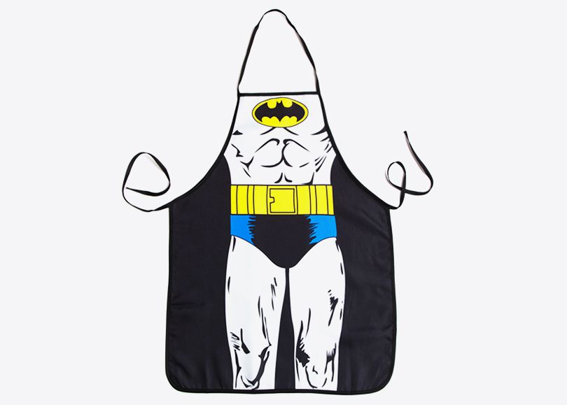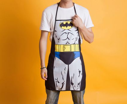 Бэтмен… фартук – как эти двое вообще встретились? Неужели Альфред заболел, и теперь Темный Рыцарь вынужден готовить себе сам? Впрочем, стряпать на кухне в таком фартуке совсем не зазорно. А учитывая то, как неохотно Брюс расстается со своим костюмом, то его фартук наверняка выглядит так.