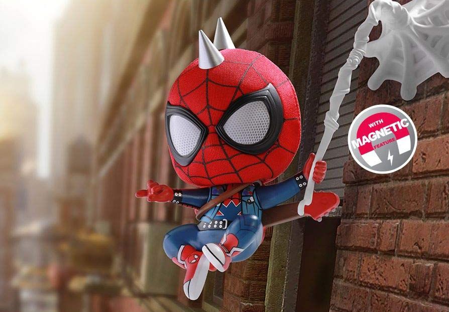 Фигурка Человека паука в скине Панка - это круто! В паутину встроен магнит, поэтому фигурка отлично крепится к металлической поверхности и отлично смотрится! Также не забывайте, что это башкотряс
