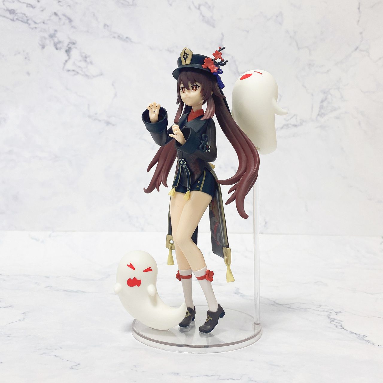 Милая статуэтка Ху Тао из Геншина с двумя духами на подставке. Сменное лицо для Ху Тао идет в комплекте!
