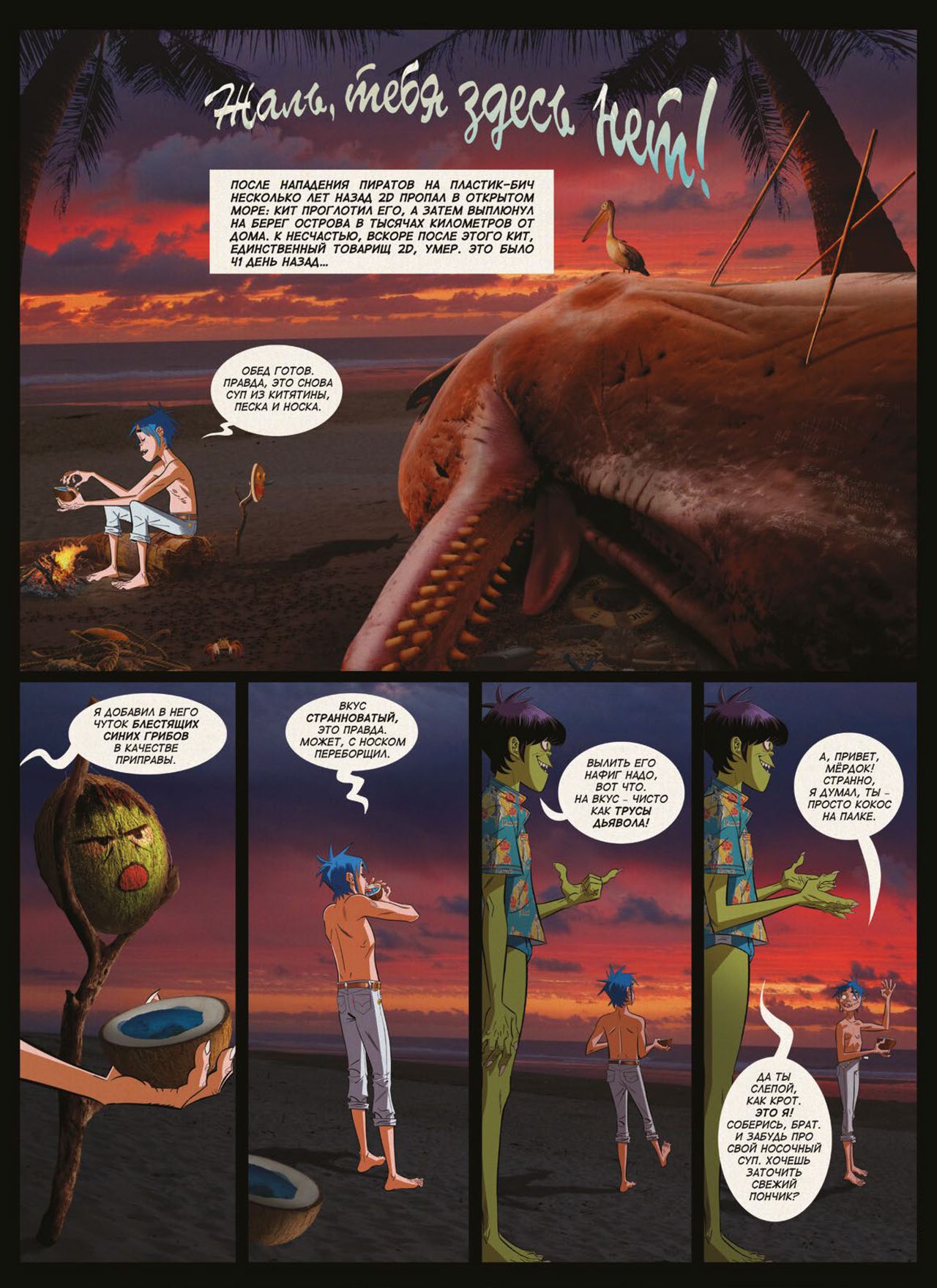 Знали ли вы, что Мёрдок, основатель группы и непревзойдённый бас-гитарист, в своё время написал мемуары? В этой книге вас ждёт сочный отрывок из этого гримуара! Расс, как истинный киноман, расскажет о своих любимых фильмах! Нудл во всех подробностях промурлычет о музыке, помогающей ей устраивать бойню (музыкальную, конечно), а 2D проведёт мастер-класс по… штанам?! Да уж, от этого квартета всего можно ожидать!