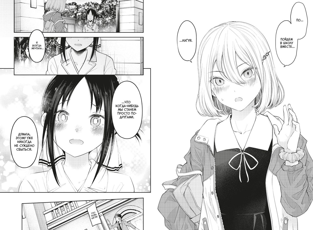 С тех пор, как Кагуя начала встречаться с Сироганэ, она с нетерпением ждала учебной экскурсии в Киото. Их первая поездка в качестве пары — что может быть романтичнее? Вот только все пошло не по плану, когда по прибытии в Киото президент внезапно сбежал. Да еще и не один, а вместе с бывшей камеристкой Кагуи, Ай Хаясакой!