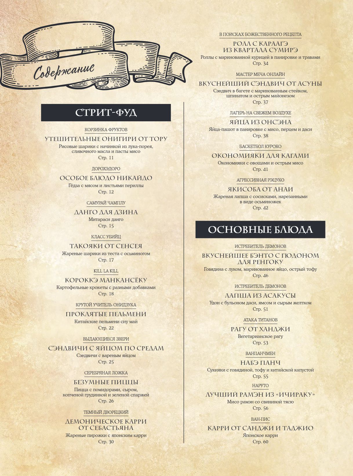 Если у Вас тоже текли слюнки от вида еды из любимых тайтлов, а демона-дворецкого, который мог бы их Вам вкусно приготовить, под рукой у не оказалось, то эта книга для Вас! Побалуйте себя кусочком яблочного пирога от Винри, попбробуйте ультра-острый бургер Боруто и запейте его большим стаканом Сэнку колы со льдом. 40 подробных рецептов, вдохновленных тайтлами, ставшими классикой уже давно или обретшими популярность в последние годы.