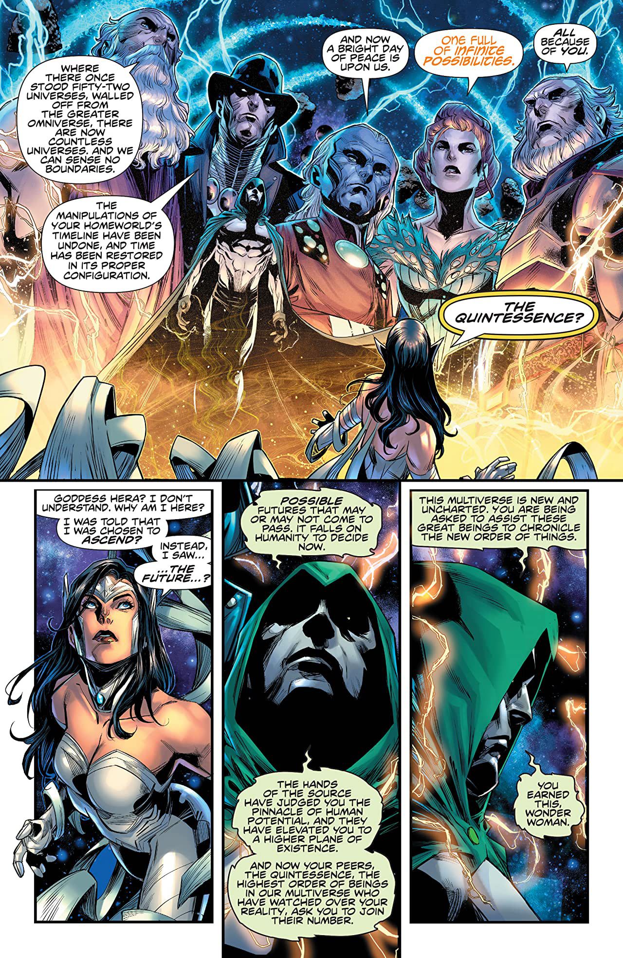 В Готэм-сити Джокер будит горожан атакой, которой даже Темный рыцарь не ожидал. В Бразилии молодая женщина обнаруживает свою судьбу и свою связь с амазонками. В Belle Reve Аманда Уоллер замышляет вторжение в Лечебницу Аркхэм. В дальних уголках космоса Монгул мечтает о галактическом господстве, в то время как Корпус Зеленых Фонарей устраивает вершину своих величайших врагов. Лига справедливости объединяет силы с Черным Адамом. За пределами мира смертных Чудо-женщина получает новую роль в божьей сфере. И где-то во вселенной DC — это возвращение Старгерл из совершенно новой сказки Джеффа Джонса!