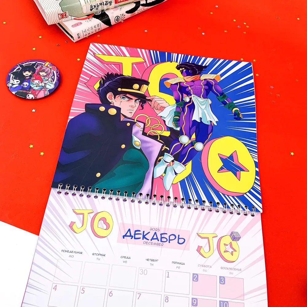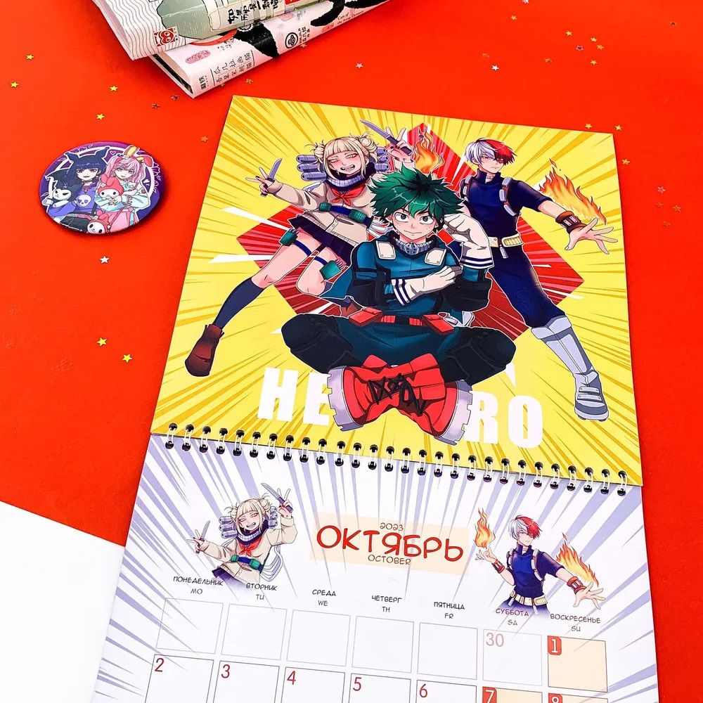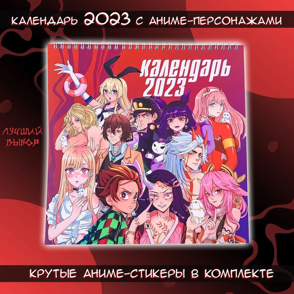 Календарь на 2023 год с любимыми аниме-тайтлами и персонажами! Но календарь непростой, а с фишечкой! В комплекте идут стикеры, которыми можно помечать дни, задачи или пометки. И всё это не в скучной теме, а подстать самому календарю!