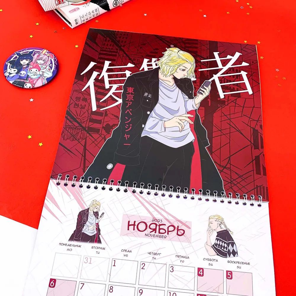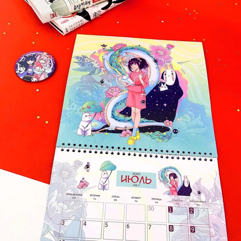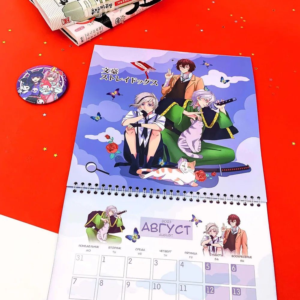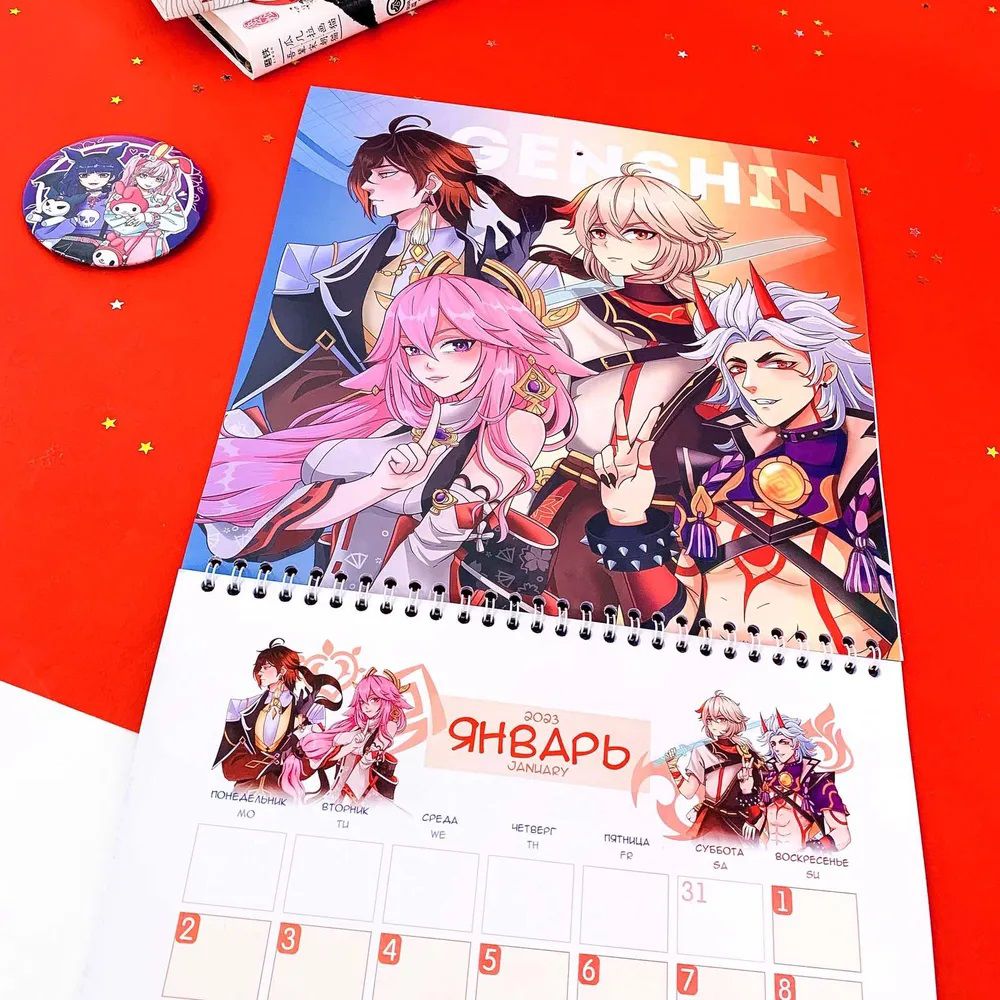Календарь на 2023 год с любимыми аниме-тайтлами и персонажами! Но календарь непростой, а с фишечкой! В комплекте идут стикеры, которыми можно помечать дни, задачи или пометки. И всё это не в скучной теме, а подстать самому календарю!