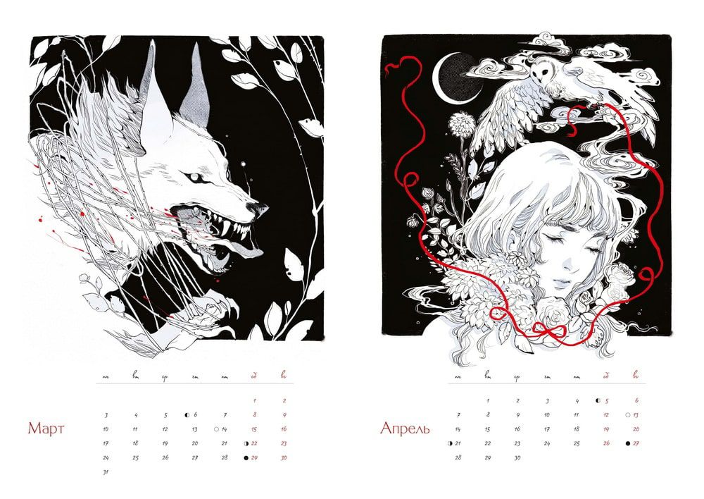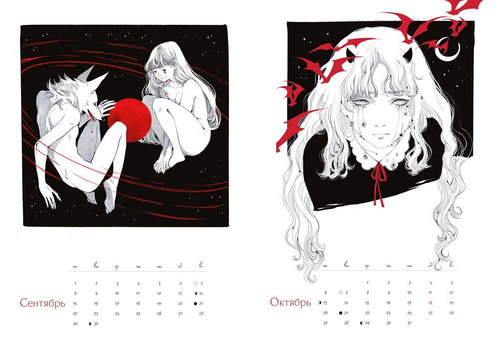 Обольстительные вампиры, таинственные ведьмы, зубастые оборотни — в этом перекидном календаре с фазами Луны на весь год от популярной художницы Loputyn вас ждут 12 чарующих иллюстраций, на которых притаилась подлунная нечисть. Подготовьтесь к ее появлению...