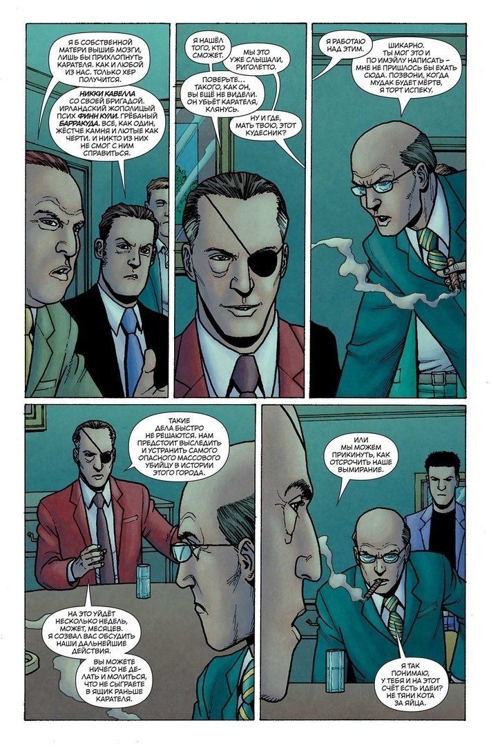 Мафия устроила Фрэнку Каслу ловушку, превратив мелкую сошку Уилсона Фиска в мифического Пахана и натравив на него Фрэнка. Однако Фиску новая должность пришлась по душе – настолько, что ради неё он готов убить своих боссов. И вот уже Каратель втянут в войну: ему предстоит один на один столкнуться со смертельной угрозой и решить, насколько далеко он готов зайти, чтобы покончить с Паханом! Противостояние с грязными копами, схватка с наёмниками Пахана Меченым и Электрой и тюремный срок – так низко Фрэнк Касл ещё никогда не опускался. Но это лишь означает, что Фрэнку больше нечего терять, в чём король преступности скоро сам убедится! Жуткая история о Карателе Джейсона Аарона собрана целиком и без купюр в одном огромном томе!