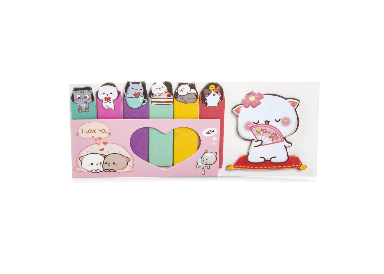 Клейкие стикеры Котики - С веером (закладки), набор, розовый