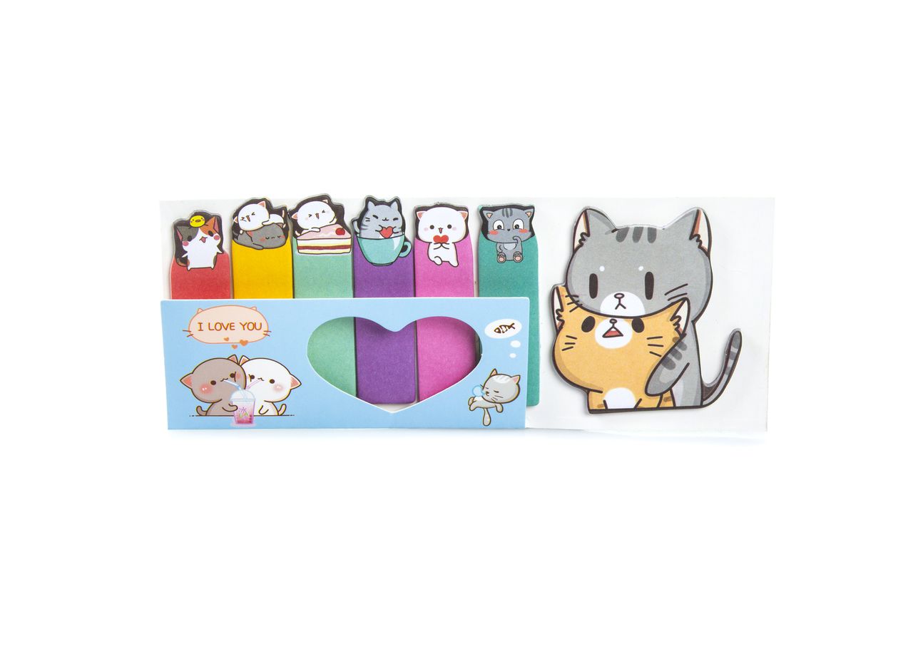Клейкие стикеры Котики - Вдвоем (закладки), набор, голубой