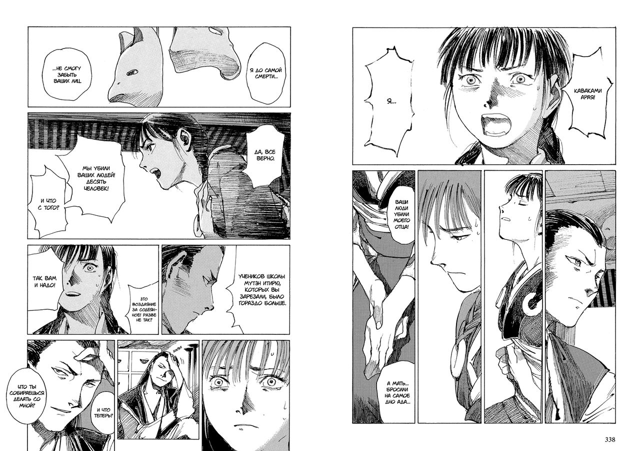 Рин вместе с бессмертным телохранителем Мандзи продолжает разыскивать своих заклятых врагов в громадном муравейнике Эдо конца XVIII века, но мало-помалу идея мести за погибших родителей уже не кажется ей такой желанной. Приспешники Аноцу гибнут один за одним, и кажется, что этой кровавой вендетте не будет конца. И если у Мандзи нет сомнений в выбранном пути, то Рин уже готова бросить поиски отмщения!