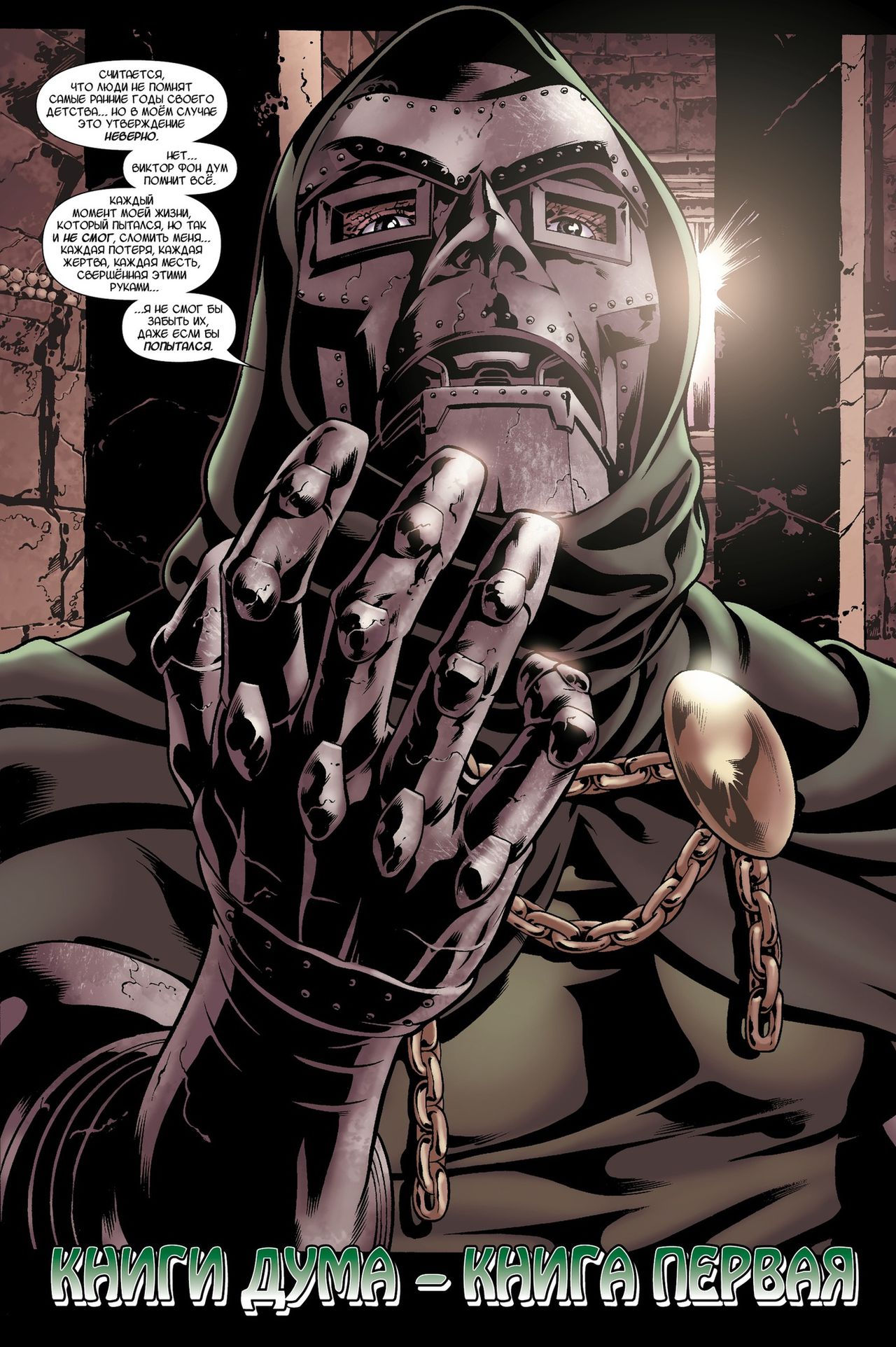 Пятикратный номинант на премию Айснера, сценарист Эд Брубейкер, вместе с блестящим художником Пабло Раймонди запечатлели жизнь Дума с самых ранних моментов до восхождения на трон Латверии. Новый взгляд на старую легенду, «Книги Дума» – это масштабная эпопея о трагедии, безумии и коварной судьбе!