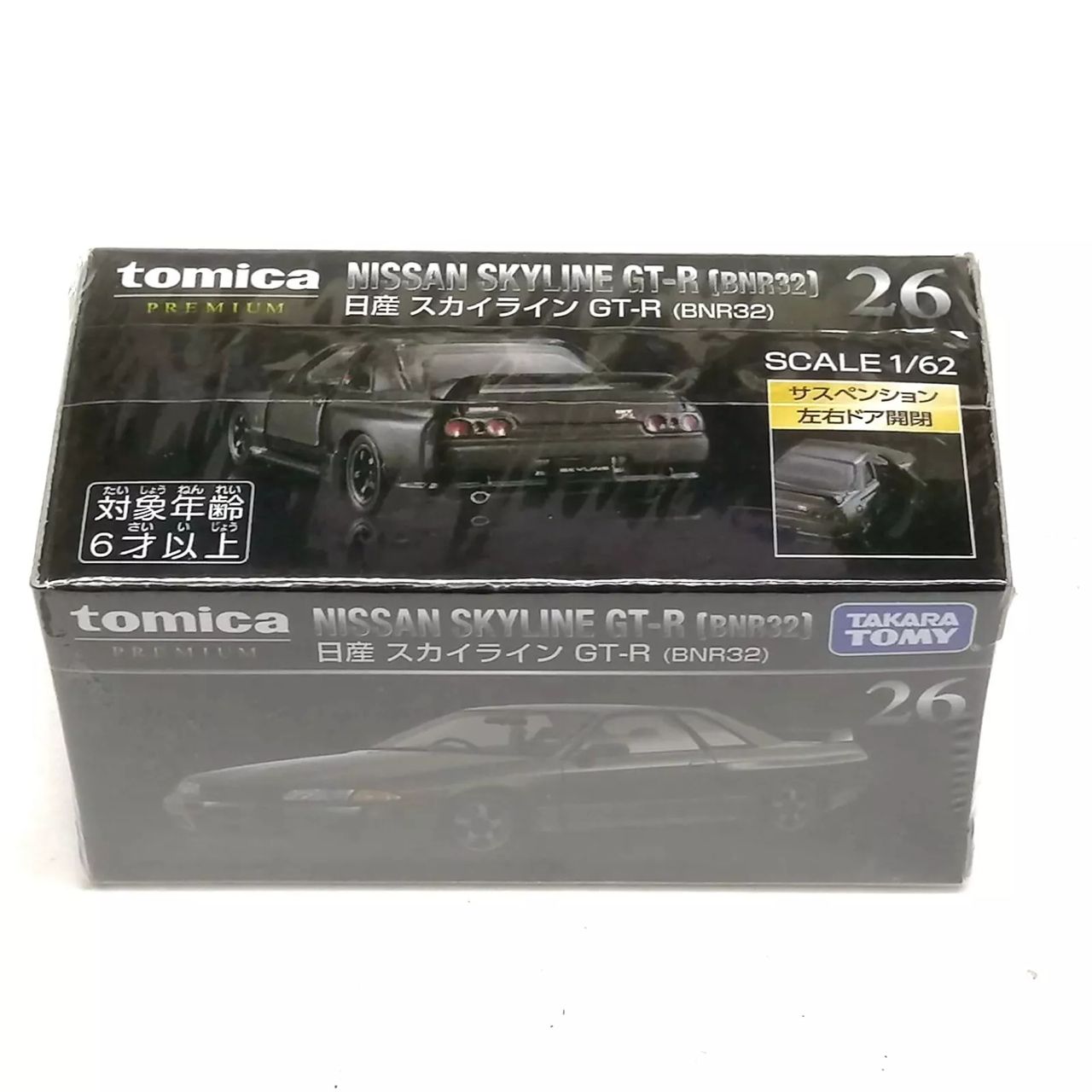 Внутри коробки находится миниатюрная модель Nissan Skyline GT-R R32, масштабом 1:64 - классический JDM.