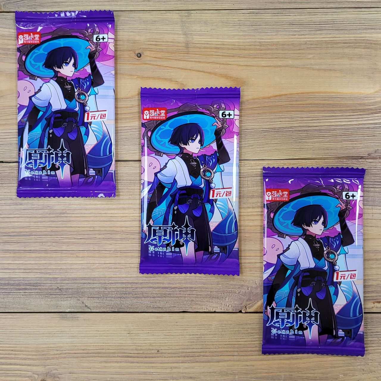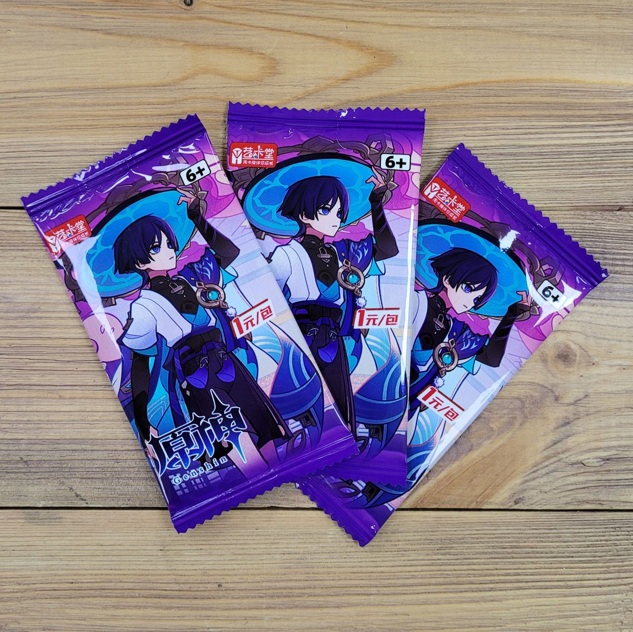 Коллекционные карточки по Genshin Impact - набор из 3 бустеров категории А. В каждом бустере Вам попадется 5 карточек разной степени редкости. Итого Вы получите 15 карточек!