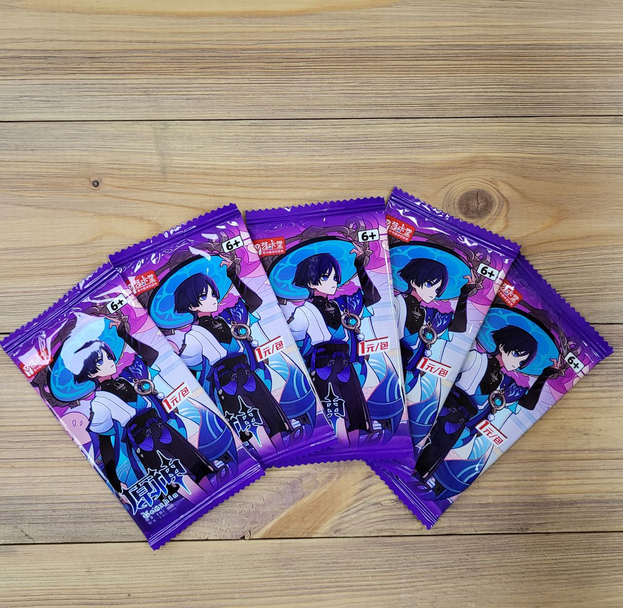 Коллекционные карточки по Genshin Impact - набор из 5 бустеров категории А. В каждом бустере Вам попадется 5 карточек разной степени редкости. Итого Вы получите 15 карточек!