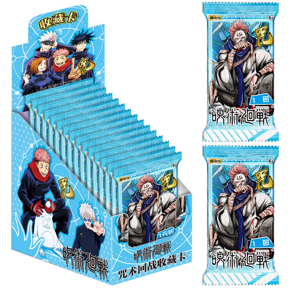 Коллекционные карточки Магическая битва 1 Тир, 3 штуки в бустере - голубой бокс (Jujutsu Kaisen)