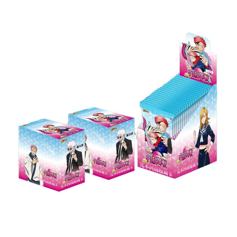 Коллекционные карточки по Магической битве - один бустер 1-го тира. В бустере Вам попадется 3 плотных карточки разной степени редкости.
