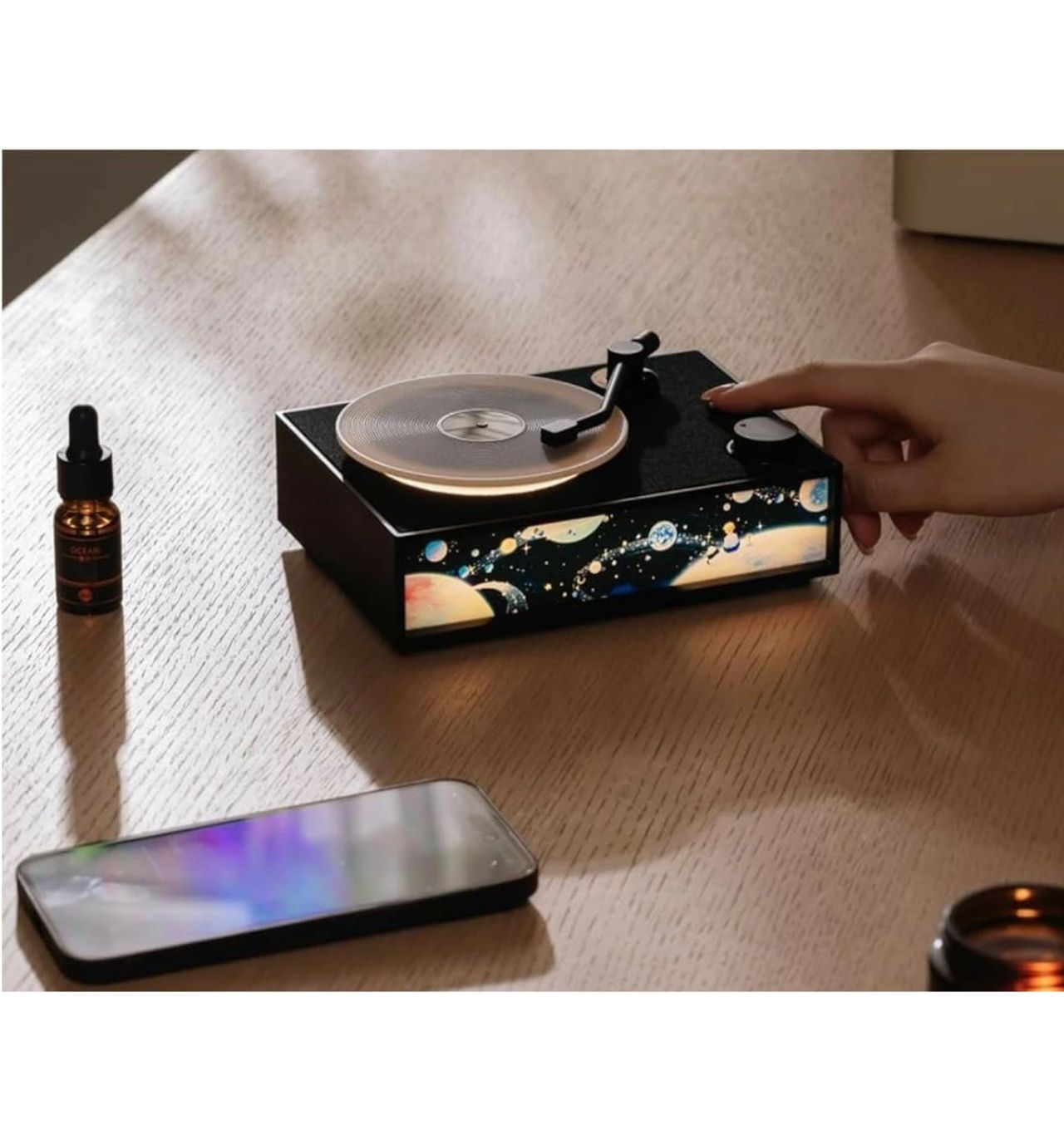 - В комплекте идет аромамасло, которое можно капнуть на диск проигрывателя