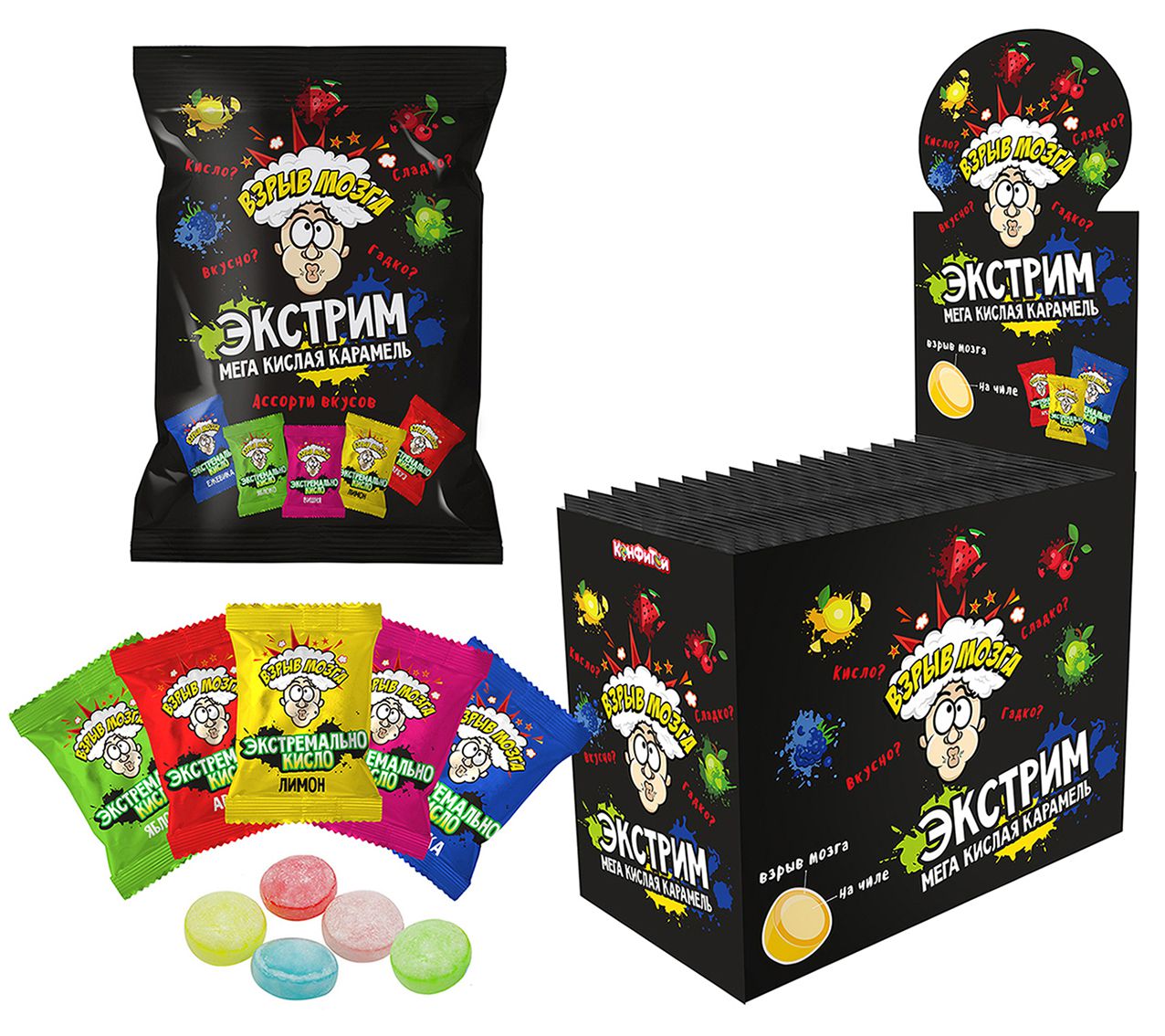 Для тех, кто любит кислые сладости! Супер кислые леденцы Экстрим - это самые насыщенные и самые кислые конфеты в линейке. Попробуйте и сравните разные вкусы - яблоко, лимон, арбуз, черника и чёрная вишня!
